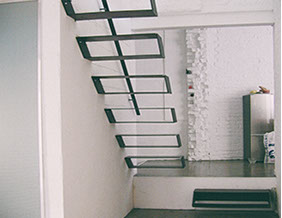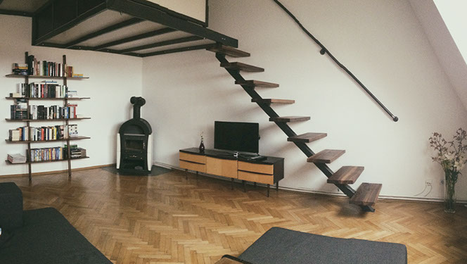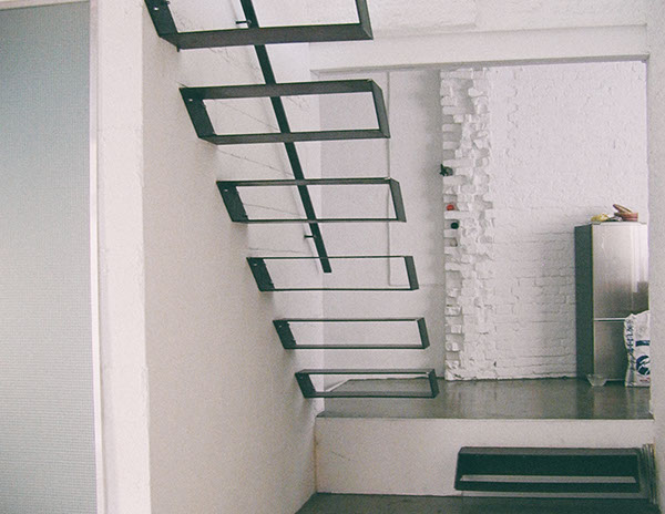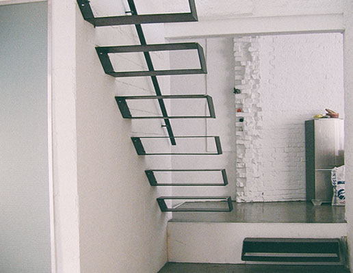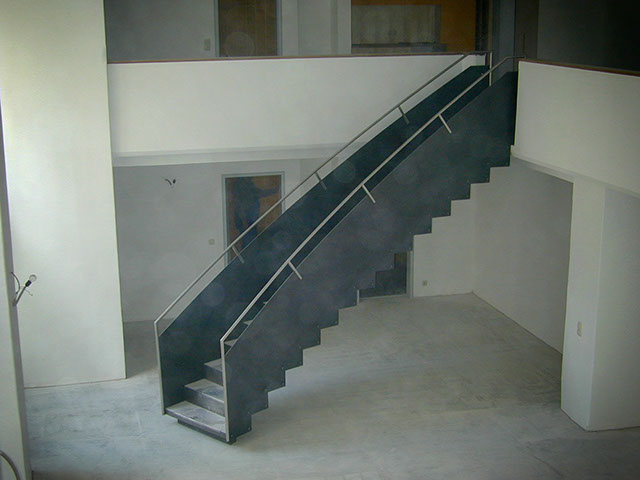 Treppauf, treppab. Einmal mit sattem Schwung, einmal asketisch und gerade. Was aus der geschwungenen Gangway geworden sein mag, beschäftigt mich jedes Mal, wenn ich an dem Neubau in der Lindengasse vorbeifahre. Eines Tages war der charmante Gewerbebau, durch den wir die komplette Stahltreppe mit sechs kräftigen Helfern rangierten und in der zentralen Halle an den umlaufenden Balkon schraubten, vom Bagger niedergerissen, geschliffen, planiert.