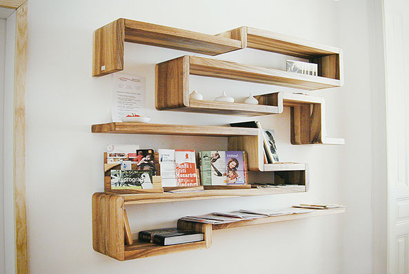 Bäckerei/Cafe in der Kaiserstrasse. Das Gros der Gestaltungsideen wurde verbal und bruchstückhaft an uns herangetragen. Wir haben geplant, gezeichnet, gebaut, montiert. Ja, wir können auch mit anderen Kreativen gut zusammenarbeiten.
